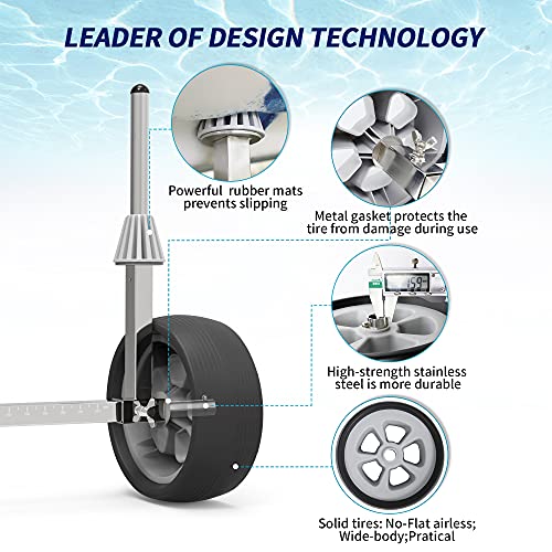 ★【Fashion and personalized design】:Gray rubber gasket can fully protect the hull from metal knock against. With the fluid structure, the water inside of the cart can be discharged itself.Pinball design at the tire installation (Easy to install), and with the scale marked at the bottom, the hole spacing of kayaks can be accurately judged.