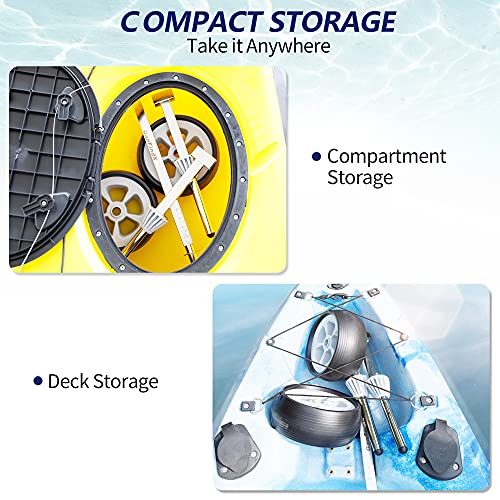 ★【Three-steps intelligent operations】:Firsty, turn the kayak on its side. Then adjust proper holespacing of the cart and push it into drainage holes of kayaks. Finally slowly righted the kayak and have a Happy Kayaking.