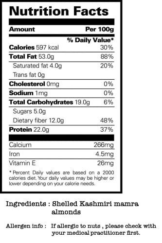 Bringing to you Kashmiri Mamra Almonds that are loaded with nutrients and natural goodness sourced from the valley of Kashmir. These locally grown almonds are rich in full oil content and are also categorized as superfoods.Picked at peak season and from a single tree making these almonds special as they are fresh and brought straight from the farms.