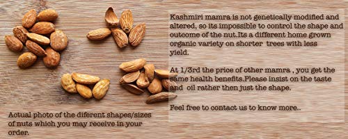 Please note that kashmiri mamra almonds may not necessarily have a scoop type shape on top – like foreign almonds.Please do not compare local produce shapes vs other outside almonds’ in any such manner.