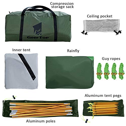 【EASY TO SET UP】Quick and easy to set up, one person can easily set up the tent in a few minutes. It comes with a lightweight portable carrying bag, can be taken to anywhere; Geertop dome tent perfect for camping, hiking, backpacking, outdoor sports, travel etc.