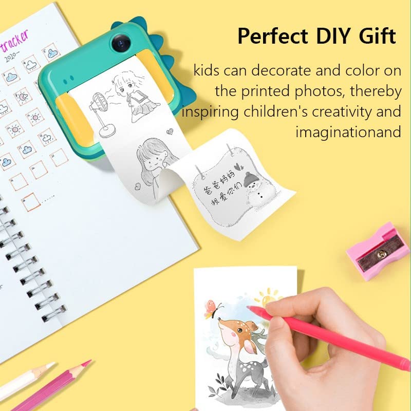 Generic Children Camera Instant Print Camera Compatible with Girls Instantane with Photo Paper Toys Camera Compatible with Birthdays