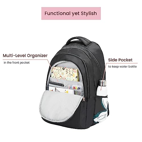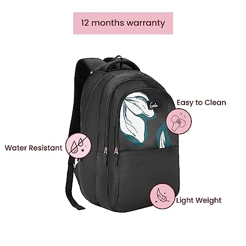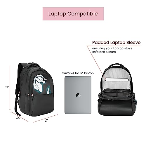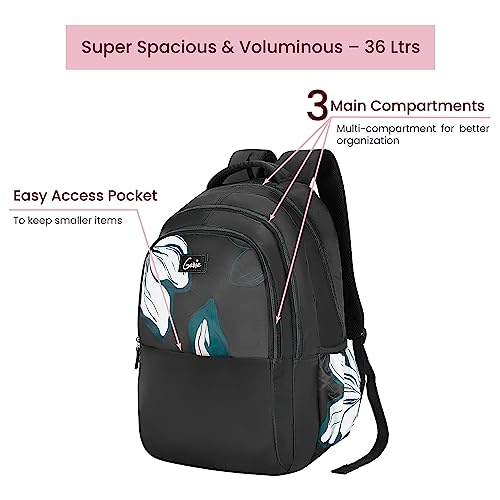 Genie Lily Laptop Backpack for Women, 3 compartments, Stylish and Trendy College Bags for Girls, Water Resistant and Lightweight Bags for Office and Travelling Purpose.36 litres (19 inch) Black colour