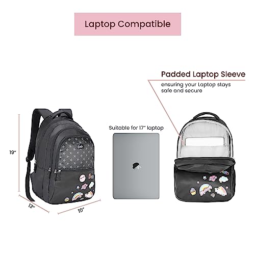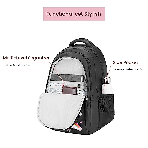 Genie Moonlight Laptop Backpack for Women, 3 compartments, Water Resistant and Lightweight Bags for Office and Travelling Purpose. 36 litres. (19 inch) Black colour