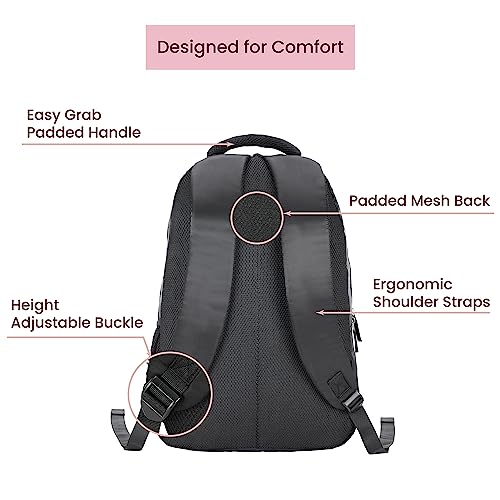 Easy grab padded handle: For added comfort and convinience to hold the bag. Padded and Ergonomic Shoulder Straps: There is padded back mesh and ergonomic straps that gives extra spine and shoulder support and helps in minimizing the load even after keeping the laptop inside.This women’s backpack can be carried to work, college, school, for a day out or even while you are travelling!