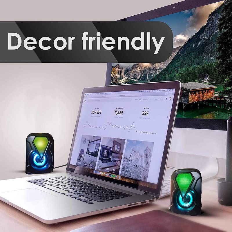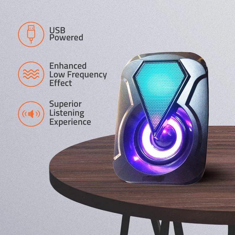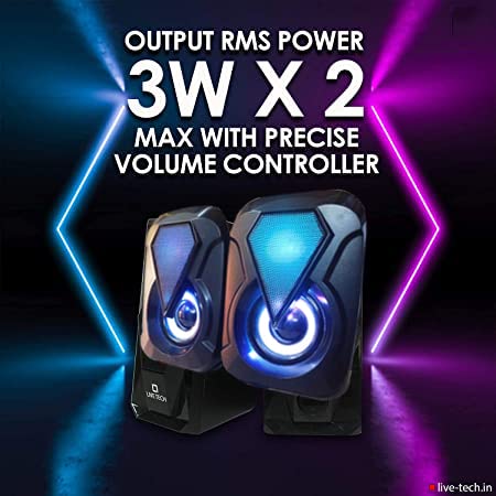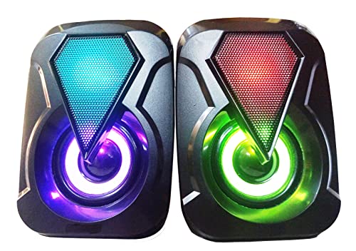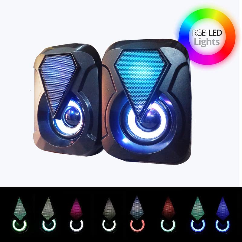 Genteel 5 Volt 2.0 Multimedia RGB Speaker, 3w*2 Hi-Fi Stereo Sound, Aux Input, USB Powered, in-line Volume Controller, Speaker for PC, Desktop, Laptop(X-CS1009)
