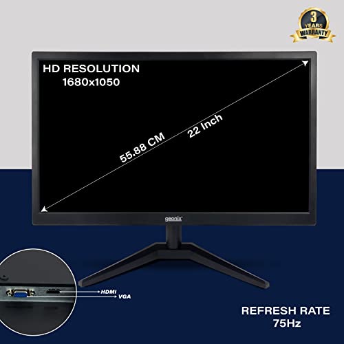 GEONIX 22 Inch PC Monitor | Full HD 1680 x 1050 Pixels | Display Output VGA & HDMI | with LED Back Light Technology |3 Years Warranty