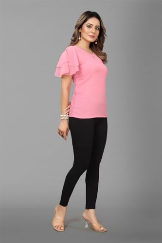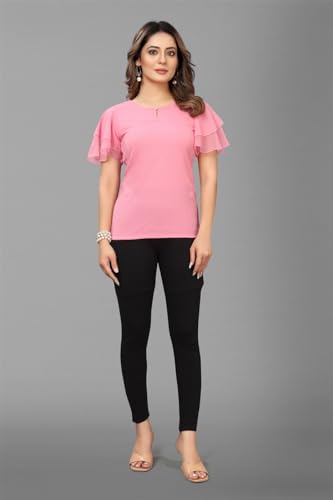 Raj Creation Top Is Made Of Georgette Blend Fabric,Crafted For Every Comfort. This Solid Top To Make It Suitable For Daily and Party Or casualy Evening Wear. || Shirt Length : 25 Inch For S,M,L and 26 For Other|| Bust Size : 42 Inch|| Sleeve Length : 3/4 sleeve || Select required Bust Size from Filter Box S (34 Inch),M (36 Inch),L (38 Inch),XL (40 Inch),XXL(42 Plus)