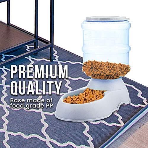 Automatic Self-dispensing Pet Feeder can fill up to 3.5 liters of dry foods. Large enough to feed your pet while you’re out of town.
