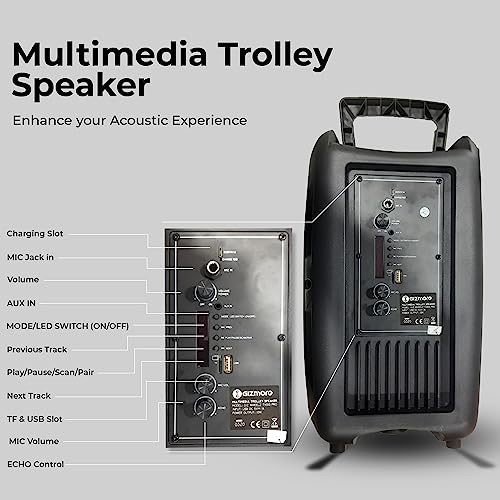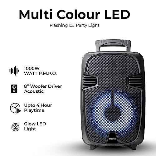 GIZMORE GIZ WHEELZ T1000 Pro Portable Bluetooth Party Speaker 1000 WT P.M.P.O with Direct USB & SD Card Slot for MP3. Perfect karaoke buddy & Trolley Play Back time Up-to 4 Hours with Mic Input.