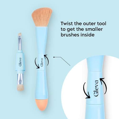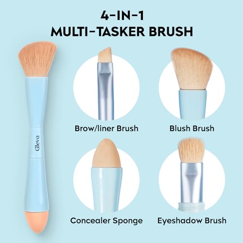 Gleva Multi Tasker 4-in-1 Travel Makeup Brush, Detachable Makeup Brush Set All-in-One Makeup Sponge, Eyeshadow, Eyebrow, Liner, Blush Blending Brush for Foundation, Concealer, & Powder (Pink)