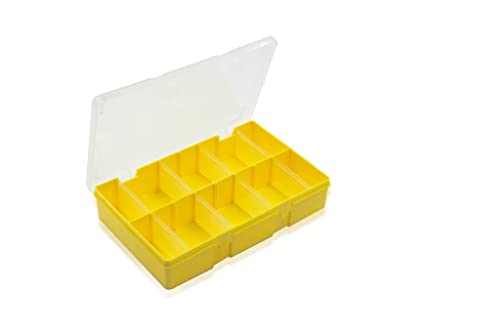 GLOBOMOTIVE Plastic Storage Box with 8 Removable Dividers for Home, Office- Lightweight Multipurpose Craft Organizer with 10 Grids for Beads, Art Crafts, Jewelry (Yellow, Rectangular)