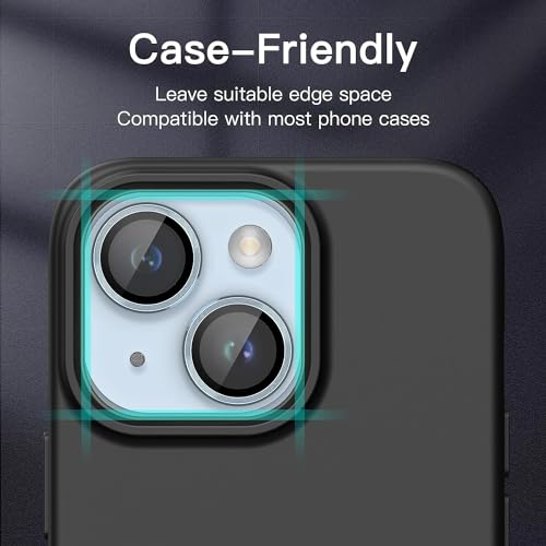 GLYNO INFOTEL Camera Lens Protector for iPhone 15/15 Plus [Case-Friendly] [Anti-Scratch] [Metal Finish] [Aluminium Edging] – (Light Blue)