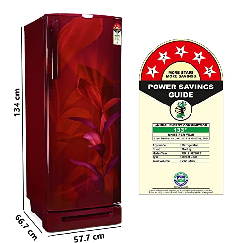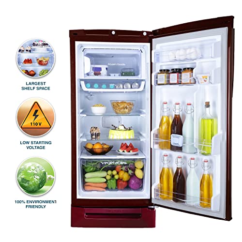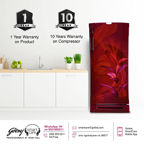 Godrej 202 L 5 Star Advanced Inverter, Jumbo Vegetable Tray Direct Cool Single Door Refrigerator With Base Drawer(2023 Model, RD 210E TDI MN WN, Marine Wine)