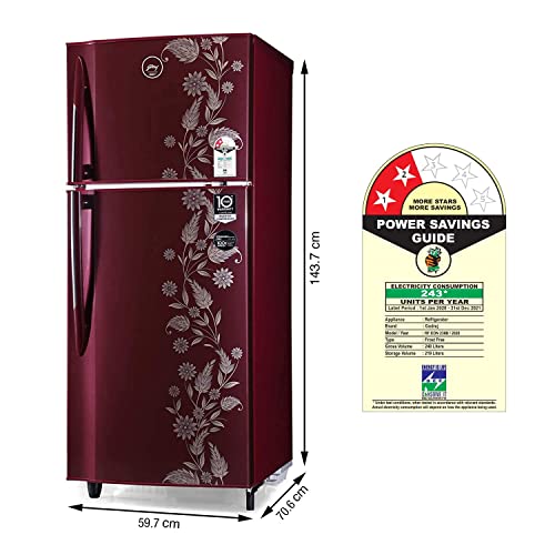 Godrej 236 L 2 Star Inverter Frost-Free Double Door Refrigerator (RF EON 236B 25 HI SC DR, Scarlet Dremin, 2022 Model)