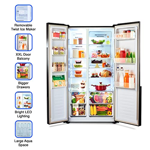 Super Freeze Function can quickly lower frozen temperature and freeze your food much faster than usual;Removable Twist Ice Maker: A removable ice maker with a twistable knob which gives you perfectly formed ice cubes every time;XXL Door Balcony: Taller items like 2-litre soda bottles can be easily accommodated in the large door pockets;Bigger Drawers: The bigger drawers provide extra storage space, allowing you to accommodate a greater number of food items easily in the refrigerator