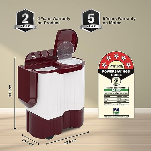 Godrej 9 Kg 5 Star Semi-Automatic Top Load Washing Machine With Rain Shower Spin (WS EDGEPRO 90 5.0 PPB3 WNRD, Wine Red)