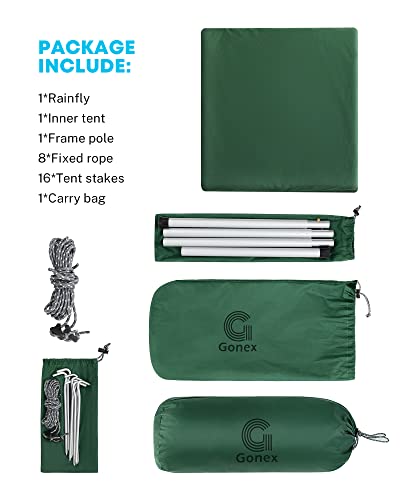【ULTRALIGHT SINGLE PERSON TENT】Gonex 1 person tent only 4.99lb/2.3 kg, Tent dimension – 9.8ft × 9.8ft × 5.2ft/3m × 3m ×1.6m (L*W*H); it is a compact camping shelter for solo hikers, packing size 1.96ft×1ft×1ft / 46cm * 14cm * 14cm. Opting for a lightweight tent will put a lot less stress on your body. Perfect for backpacking, camping, hiking, kayaking, canoeing, fishing, military training.