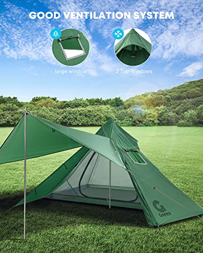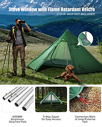 Gonex Lightweight Hot Tents with Stove Jack, Waterproof 1 Person Bushcraft Shelter, Double Layer Tipi Tent for Camping, Hunting, Fishing, Wind-Proof Military Tent, Army Tent