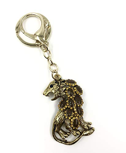 Good Goody Lion Elegant Stone Studded Keyring | Fancy Bag Hanging Jewellery | Purse Hanging Accessory Keychain (Gold)