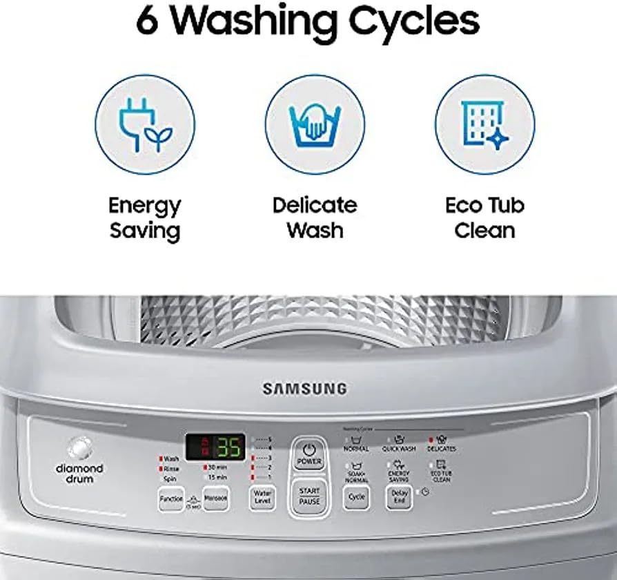 Be the first to review “GOODLUCK Samsung fully automatic 7kg Top Loading Washing Machine Imperial Silver, Diamond Drum”