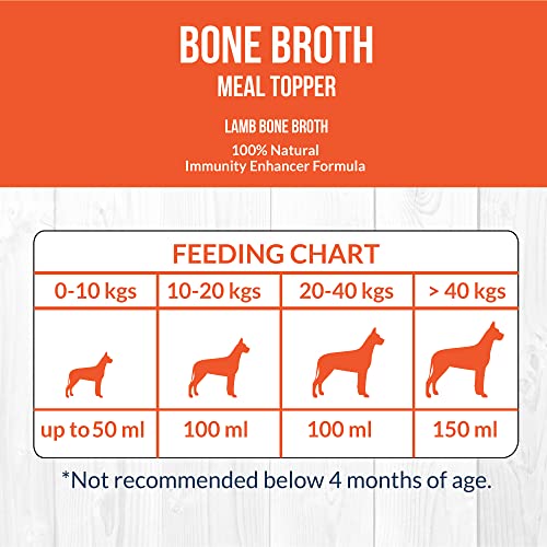 Suitable for All Dog & Puppies: This Bone broth is Suitable for dogs above 4 months of age. 0-10Kgs up to 50ml, 10-20Kgs Upto 100ml, 20-40Kgs Upto 100ml, >40Kgs 150ml.