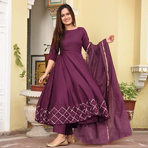 Who doesn’t love a gorgeous magenta colour? It’s trendy and modern. So let your inner beauty shine with this beautiful magenta color Anarkali. Just like the color, the fabric is smooth and comfortable too. This dress looks good on every body type and this color makes every skin glow.