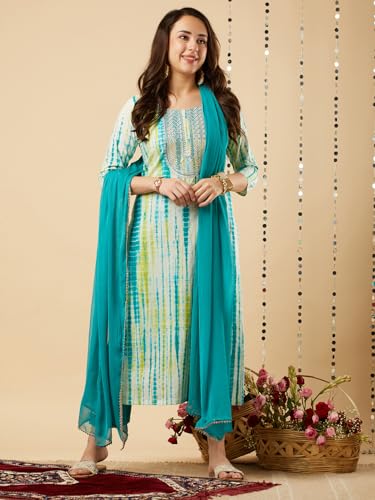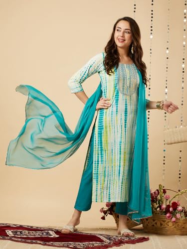 Be the first to review “GoSriKi Women’s Cotton Blend Straight Printed Kurta with Pant & Dupatta”