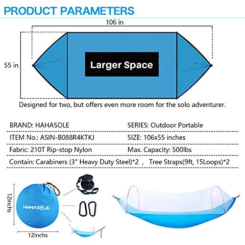 HAHASOLE Camping Hammock with Mosquito Net – Includes Tree Straps & Carabiners – Ripstop Nylon Lightweight & Portable Travel Bed Set with Bug Net for Hiking Backpacking Beach, Easy Setup Outdoor Gear