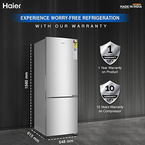 Haier 237L 2 Star Frost Free Double Door Bottom Mount Refrigerator (HEB-242GS-P, Moon Silver,Convertible)