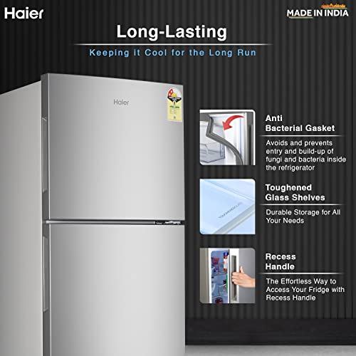 Haier 240L 2 Star Frost Free Double Door Top Mount Refrigerator (HEF-252EGS-P, Moon Silver)