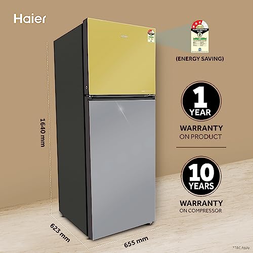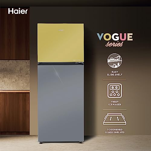 Haier 328 L 3 Star Frost Free Triple Inverter Double Door Top Mount Refrigerator (2023 Model, HRF-3783YGG-P, Yellow Grey Glass, Convertible,Vogue Series)