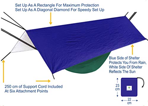Hammock Bliss All Purpose Waterproof Shelter – Stay Dry In Your Hammock In Rainy Conditions, Block Out The Sun Or Protect Your Gear From The Elements,