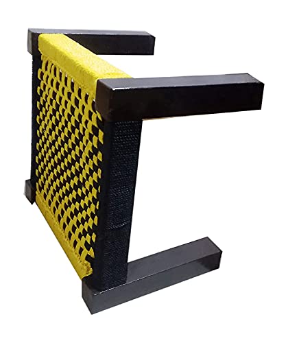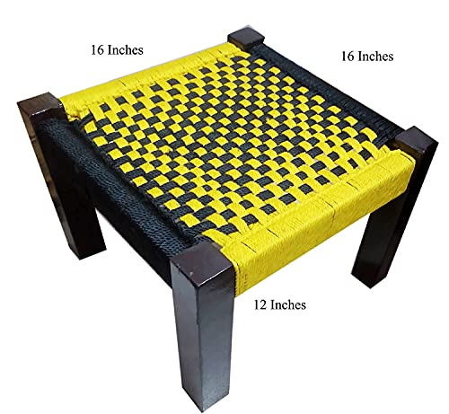 Handmakers ! Wooden Chowki with Yellow and Black in Chess Board Design (16x16X12) Inches