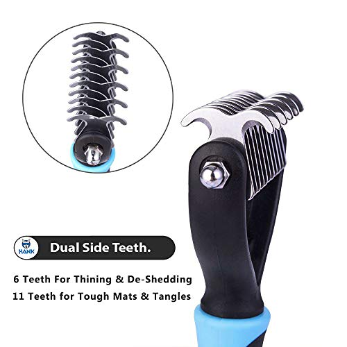 HANK Dog Comb – Dog Hair Brush for Small to Large Pets – Dual Side Stainless Steel Cat Comb – Pet Hair Remover – Deshedding Brush for Dogs – Quick – Easy Pet Grooming Brush