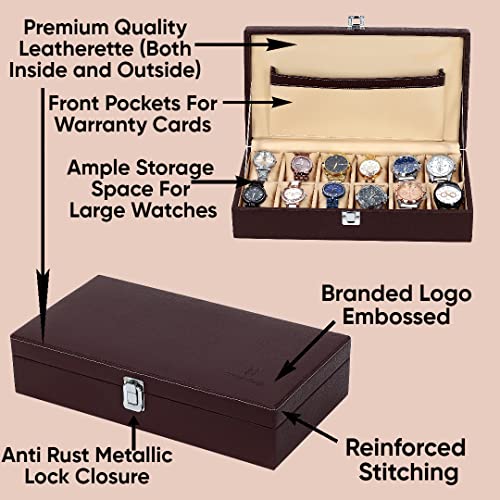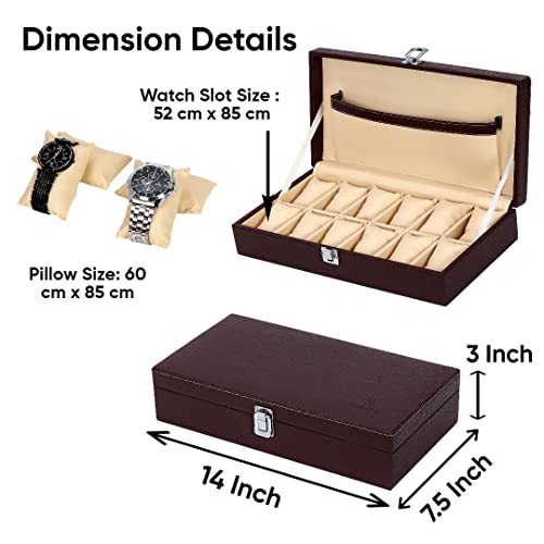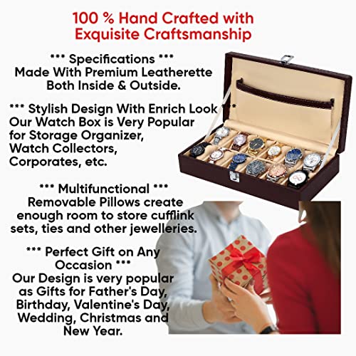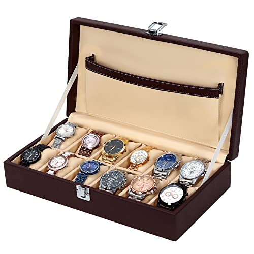 Hard Craft Watch Box Organizer Holder Jewelry Accessories Display Storage Case Watch Organiser Collection Box 12 Slots In PU Leather For Men Women (Brown)