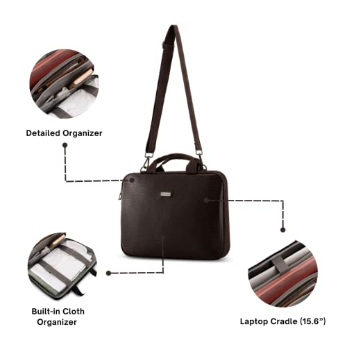 HARISSONS Gator Laptop Messenger Bag – 15.6 Inch Office Briefcase Bags 8 Ltrs with Built-in Organizer, Water-Resistant Zippers, PU Vegan Leather, Detachable Shoulder Strap, Dual Padded Handles
