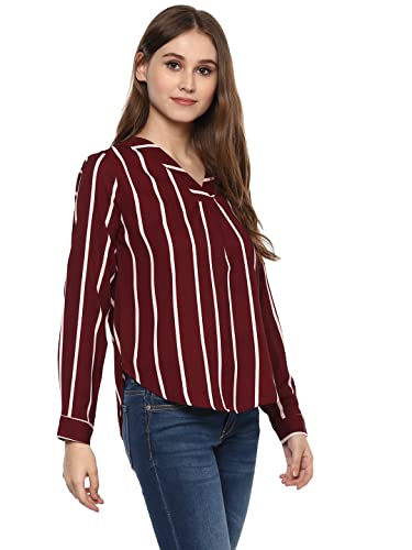 Harpa V-neck striped top (GR5317-MAROON). brand:-Harpa color: Maroon pattern: striped category: tops.