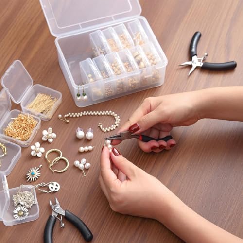 HASTHIP® Transparent Jewelry Organizer Box Set of 15Pcs PlasticOrganizer for Earrings, Ear Studs, Rings, Necklace, Accessories, Multi Purpose Storage Case for DIY Crafting, Beading, Diamond Painting