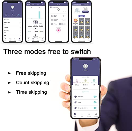 BLUETOOTH CONNECTIVITY IOS/ANDROID : Our fitness skipping rope can connect with our APP SKIPJOY that can easily analyze and track your periodic workout historical data. You can grasp your skip time, total skip number, calories burned, and tangles to reach your fitness goal at any time.