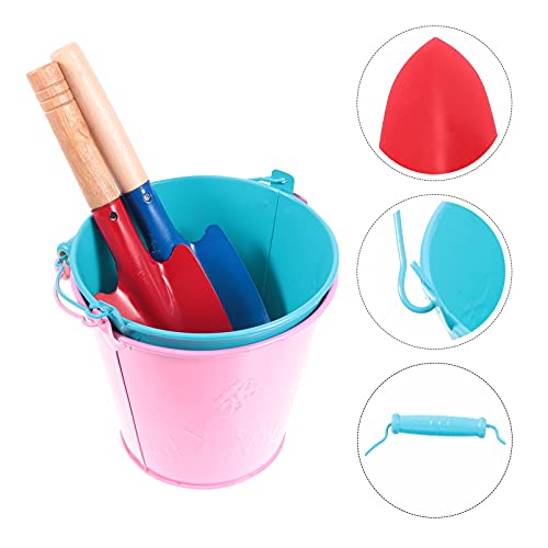 Hemoton 4Pcs Beach Sand Toys Buckets and Shovels Iron Sand Pail for Kids Beach Play Camping Gear Water Party Favors
