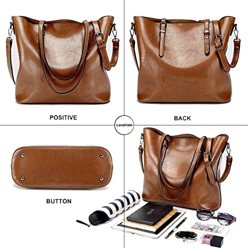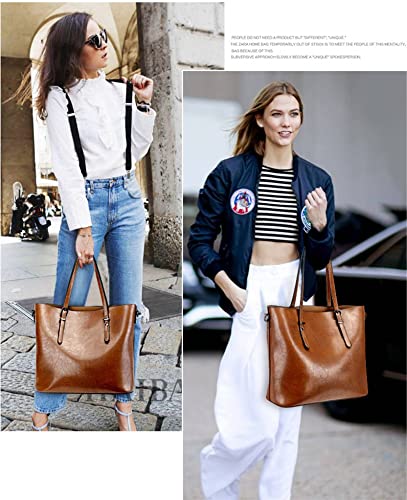 HEMOVIA Women Top Handle Satchel Handbags Shoulder Bag Messenger Tote Bag Purse (Purse, Brown)