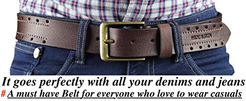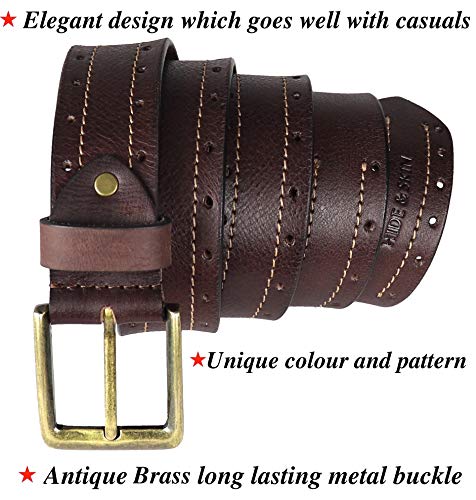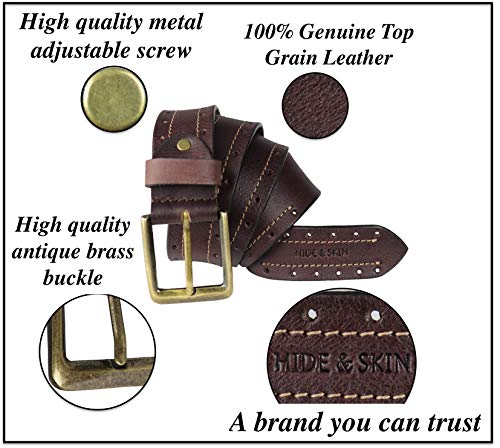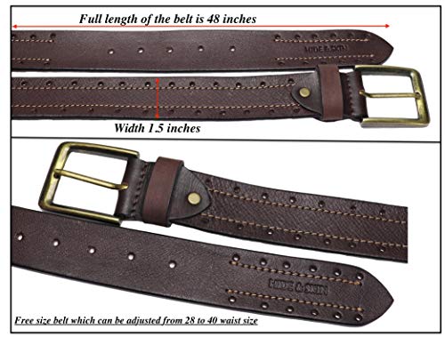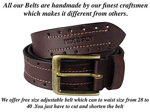 HIDE & SKIN Full Grain Genuine Leather Belt for Men | Belt for men leather | Casual Belt | Jeans Belt |Adjustable Free size fits 28-40 inches | Gift Box included