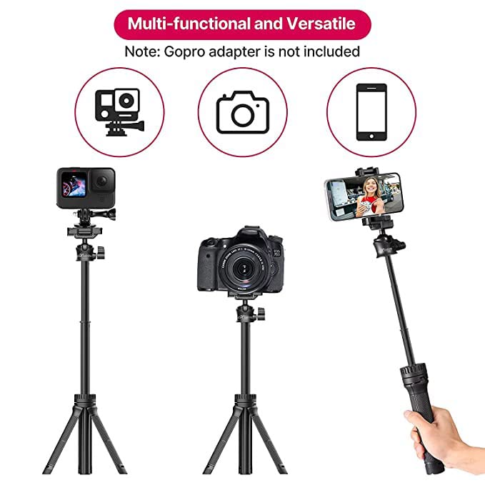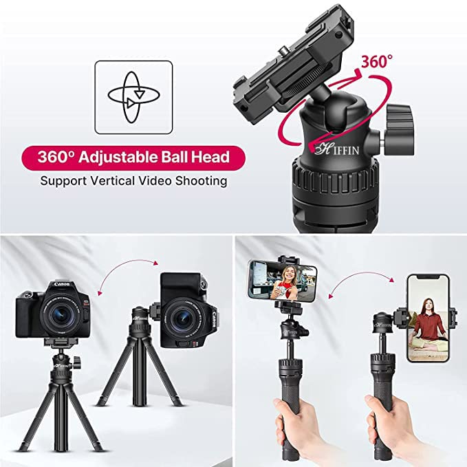【360° Adjustable Ballhead】: The tripod ballhead is 360° Adjustable. Which allows you shooting from various angles. Supports horizontal and vertical video shooting.