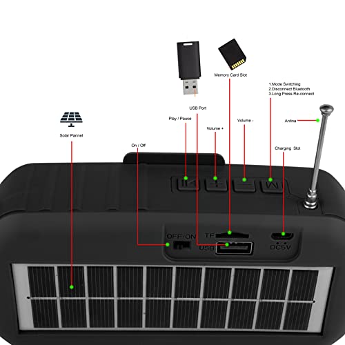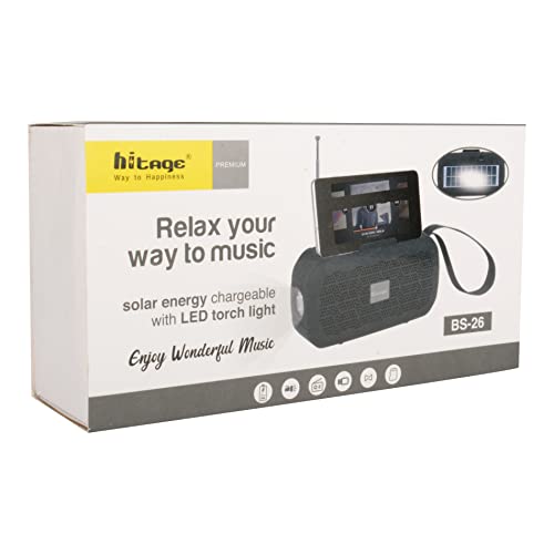 Hitage BS-26 Solar Charging |LED Torch|TF Card |USB Portable Wireless Speaker 5 W Bluetooth Speaker (Black)