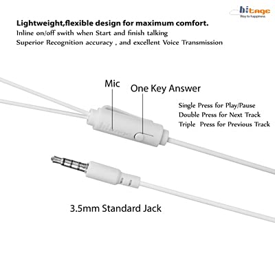 Hitage presents earphones with high-quality sound and long-lasting batteries. Hitage is a leading brand of mobile accessories and earphones. High-Performance headset has high sound quality, compact design with varied elegant color. Hitage wired earphones bring you a comfortable and fashionable life. Hitage enjoy high definition sound music with the stereo earphone which lets you take the advantage of listening to music and sound, offering the best of both worlds. Hitage has customized these earphones by giving customers what they were looking for: ultra-deep bass and tangle-free wires, earphones with mic and one key answer. They’re very light in weight and are very comfortable. Ergonomic design- Hitage wired earphones are ergonomically designed, flexible, lightweight, allowing you to comfortably wear them for long periods of time, the ear tips are soft and of excellent quality. High quality earphones- Hitage wired earphones are made of high-quality material, the headphones are durable and fashionable. The earphone design helps it withstand all kinds of wear-and-tear; any weather, any season, year in and year out. Built in microphone & multifunctional button- Wired headphones in-ear design combined with the correct ear tips will seal your music in and leave the external noise out and deliver natural clear and super-enhanced sound. These earbuds with a microphone are convenient for hands-free calling. One-button in-line remote gives you the power to easily answer and end phone calls, control songs play/pause, next song/prev. song, & volume up/ volume down. Wonderful gift choice for everyone- They will be one of the best gifts for your family and friends on the coming holiday and festivals. Reminder: Continuous use at high volumes may cause hearing damage.