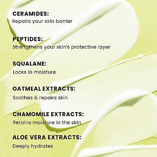NOURISHES, REPAIRS & STRENGTHENS BARRIER: It helps strengthen your skin’s protective outer layer, effectively shielding it from UV rays, pollutants, and other environmental aggressors with the help of ingredients like Ceramides, Peptides, Squalane & Oatmeal extracts.