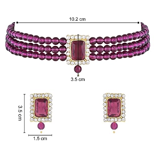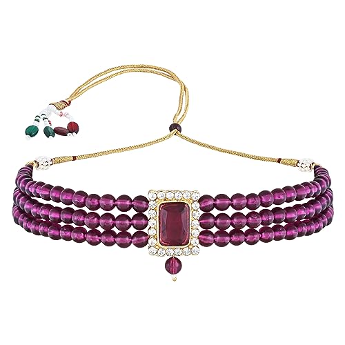 I Jewels Gold Plated Traditional Stone Pearl Choker Necklace Jewellery Set For Women/Girls