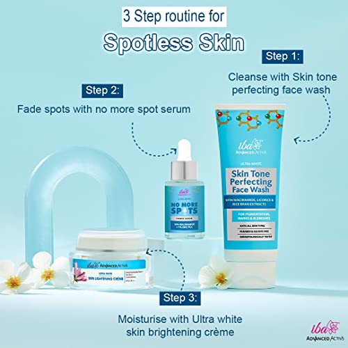 Iba Say Hello to Spotless Skin Care Regime Kit – Advanced Niacinamide Complete Skin Care routine Kit with Skin Tone Perfecting Face wash, No More Spots Power Serum & Skin Lightening Crème | For Acne Marks, Reduces Dark Spots & Pigmentation | Sulfate Free & Paraben Free