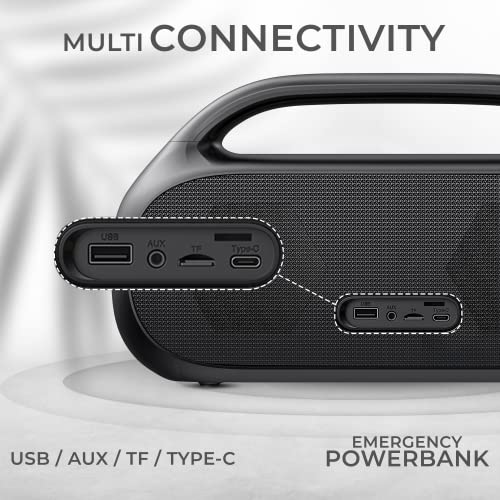 iGear Grape Portable Wireless Speaker with 70W Output, with Wireless Rechargeable MIC, RGB LED’s, TWS Mode, Multi-Compatibility Modes, IPX6 Water Resistance, EQ Modes, with Type-C Charging